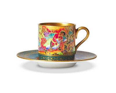 A Wedgwood Fairyland Lustre 'Nizami' Can Cup and Saucer