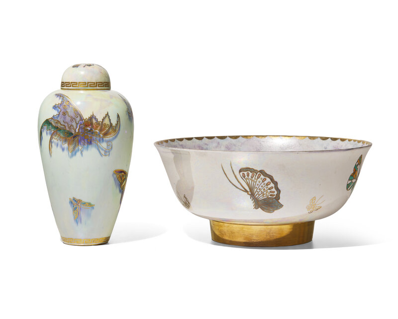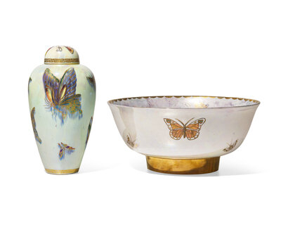 Two Wedgwood Butterfly Lustre and Parcel-Gilt Table Articles