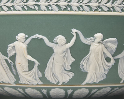 With applied floral banding above eighteen dancing maidens, impressed Wedgwood to the underside.