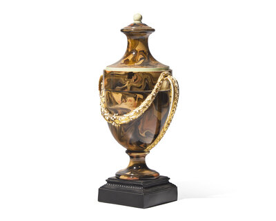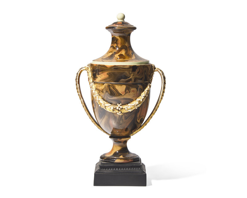 A Wedgwood and Bentley Parcel-Gilt Agateware Covered Urn