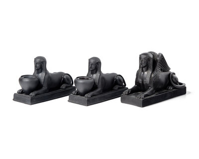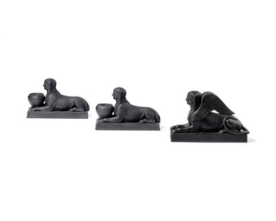 A Wedgwood Black Basalt Sphinx Figure and Two Related Inkwells
