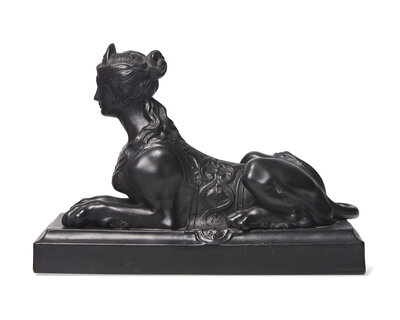 After a design by Robert Adam, classically modeled in repose; impressed Wedgwood stamp.