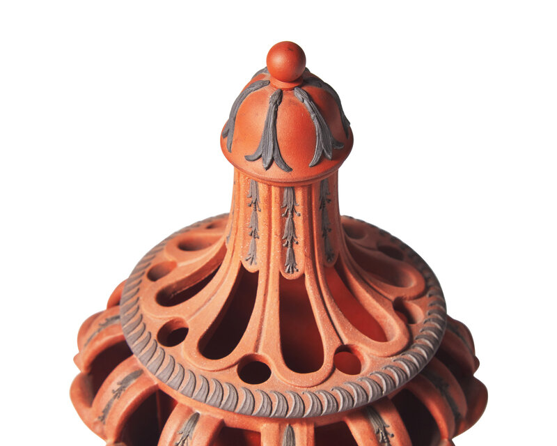 In three parts, with removable upper section and lid; with impressed Wedgwood stamp.
