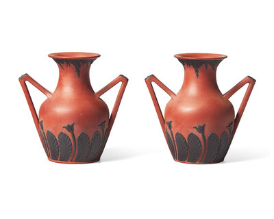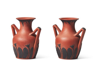 A Pair of Wedgwood Rosso Antico "Bat Wing" Portland Vases