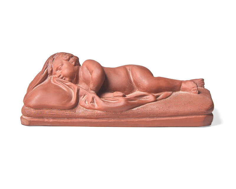 A Wedgwood Rosso Antico Sleeping Baby Figure