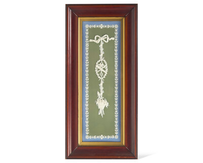 A Framed Wedgwood Green & Blue Jasperware Plaque
