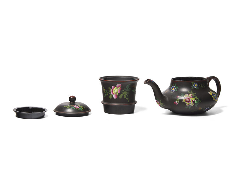 Each piece enameled with polychrome florals; impressed Wedgwood to the underside.