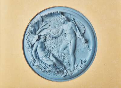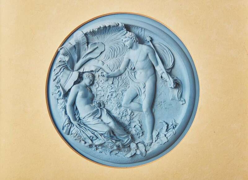 A Rare English Blue Jasperware 'Oberon and Titania' Plaque
