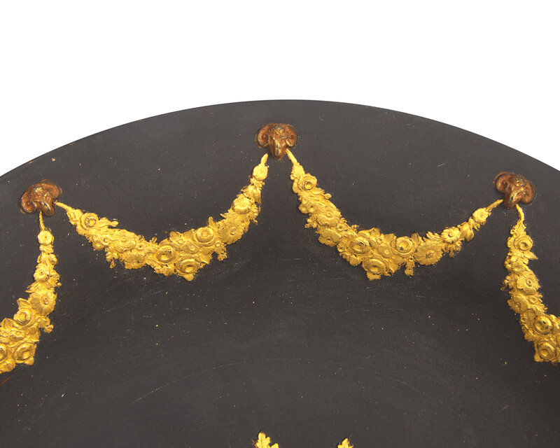 With applied rams head and gilt swag border; impressed Wedgwood stamp.