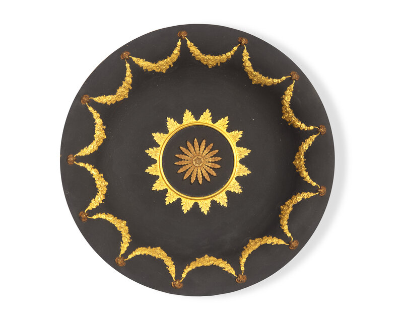 A Wedgwood Neoclassical Parcel-Gilt Black Jasperware Plate