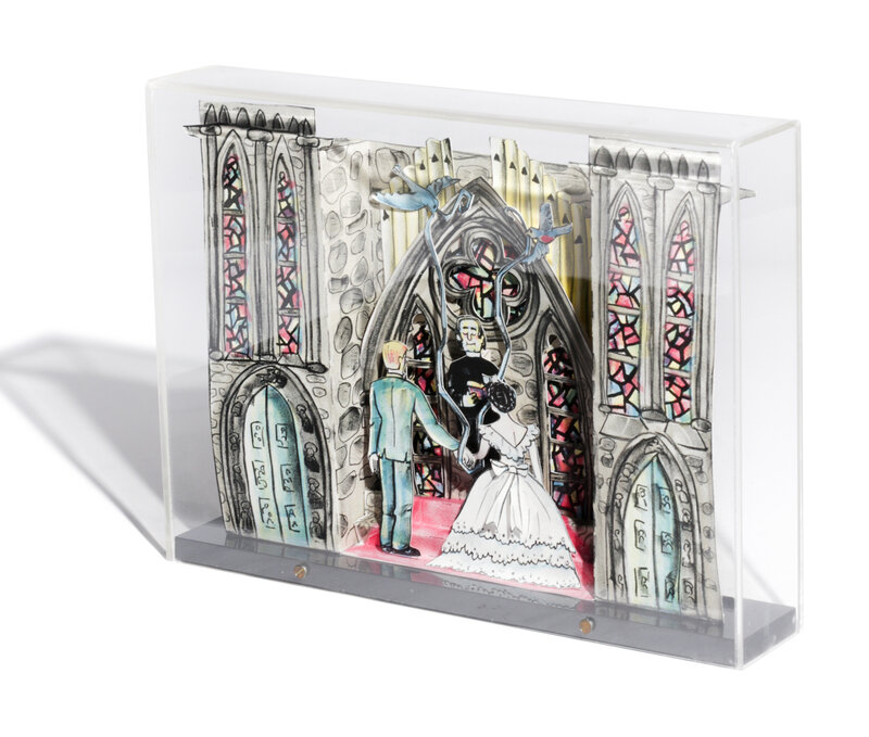 three-dimensional lithograph in colors on Rives BFK paper in acrylic case