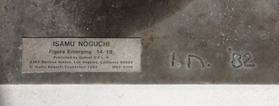 Heliarc-weld signature and date I.N. '82, plate with edition number 14/18 and credits (at base)