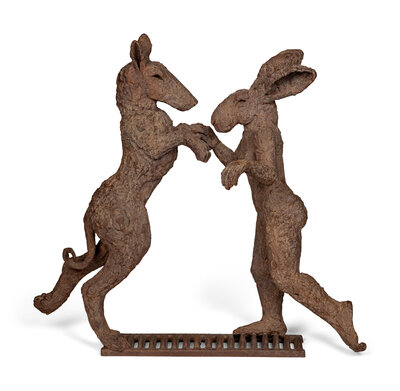 Pink Lady-Hare Dancing with Big Brown Dog, 2000