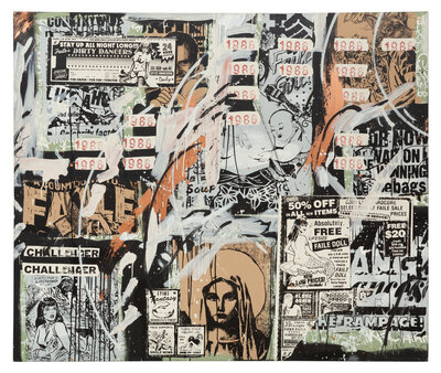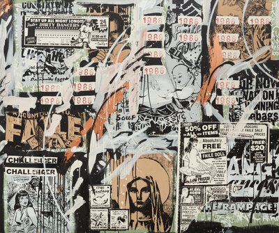 acrylic, spraypaint, and silkscreen on canvas