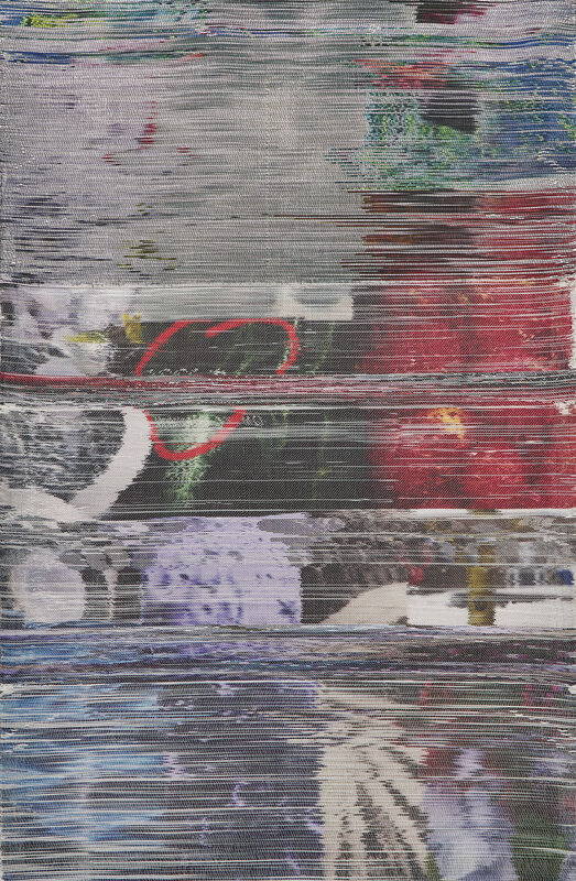 handwoven polymer, dye sublimation ink, and acrylic dye on linen