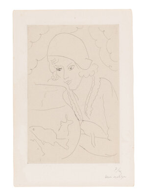 Jeune femme à la coiffure Hollandaise, regardant des poissons, ca. 1929