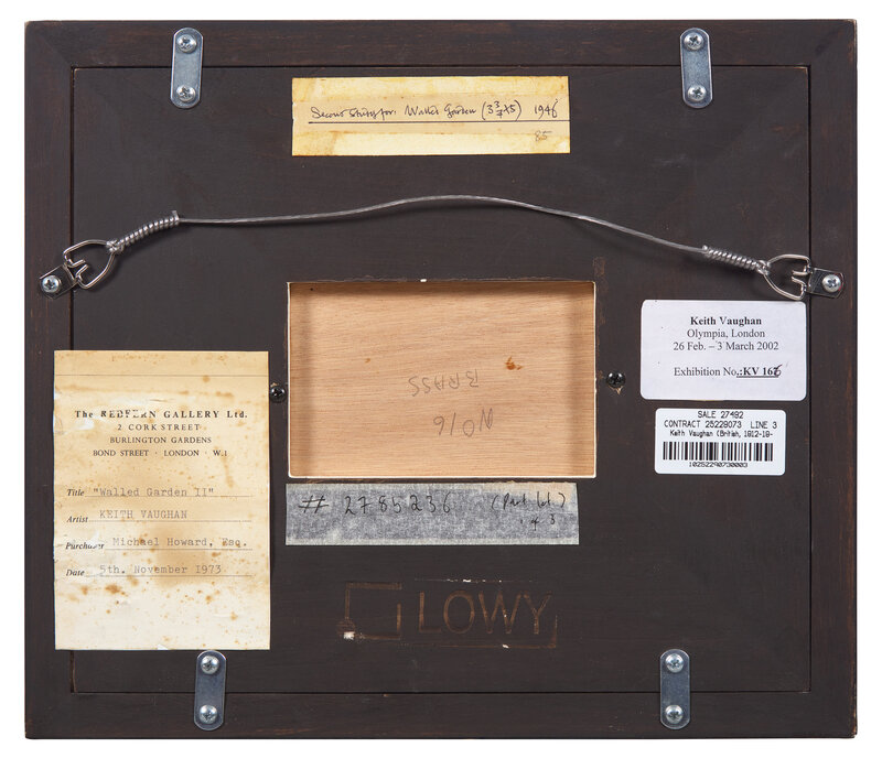 signed Keith Vaughan (lower right); also titled and dated 'Second Study for Walled Garden 1946' on label attached to backboard (verso)