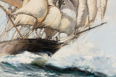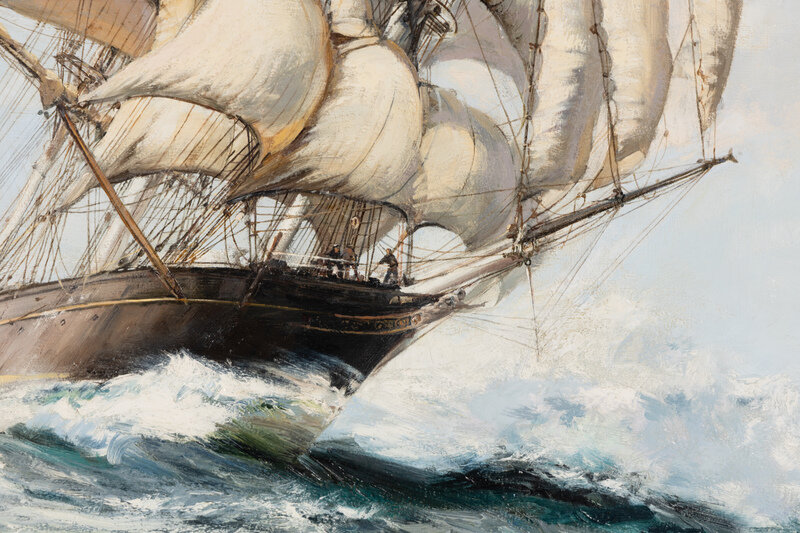 signed Montague Dawson (lower left); titled (on the stretcher)