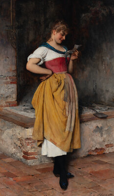 signed E. de Blaas and dated (lower right); inscribed Eug Blaas 9035 (on a label affixed to the reverse)