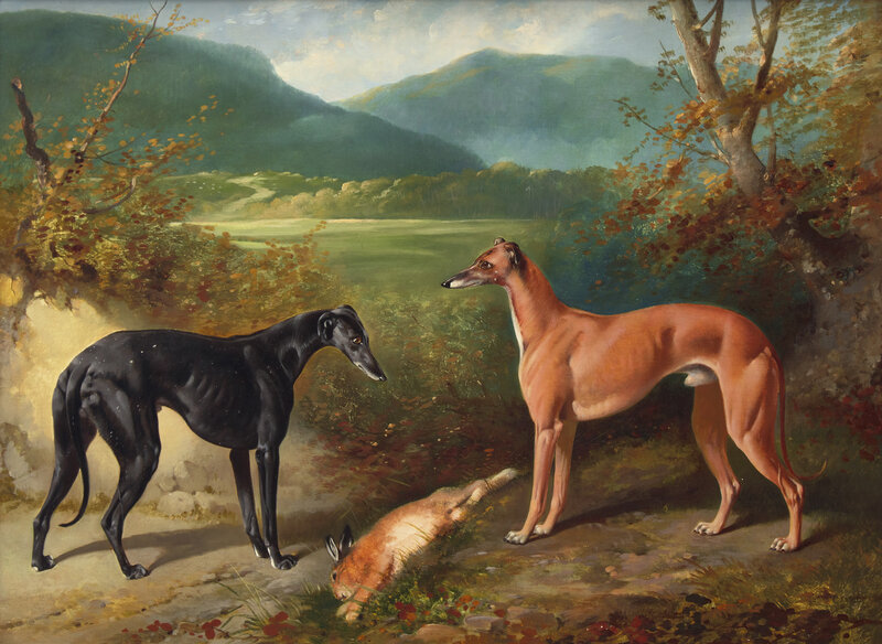 Three Greyhounds; together with Two Greyhounds with a Hare (A Pair)