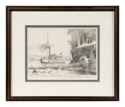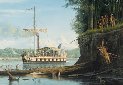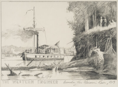 The Western Engineer Ascending the Missouri River, 1992 (together with a pencil sketch for the painting)