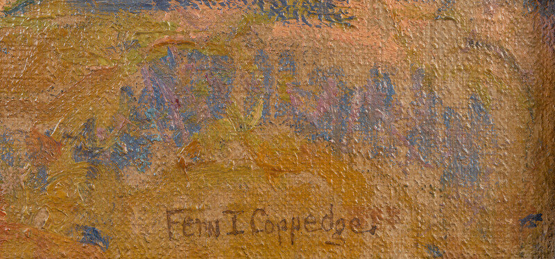 signed Fern I Coppedge (lower right); also signed, titled, and inscribed (on the stretcher)