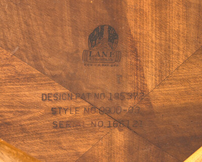 'Lane' stamp and patent number to underside