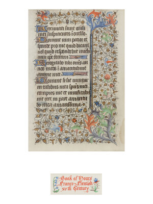 (1) Originally from a Book of Hours created most likely in Amiens, France based on the style of border decorations.