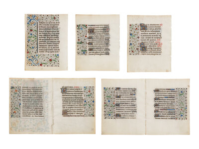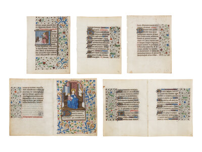Seven leaves (2 illuminated bifolios and 3 single leaves) from a very fine Book of Hours attributable to the circle of the Master of Jean Rolin II.