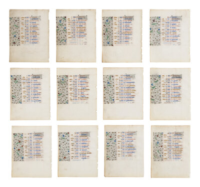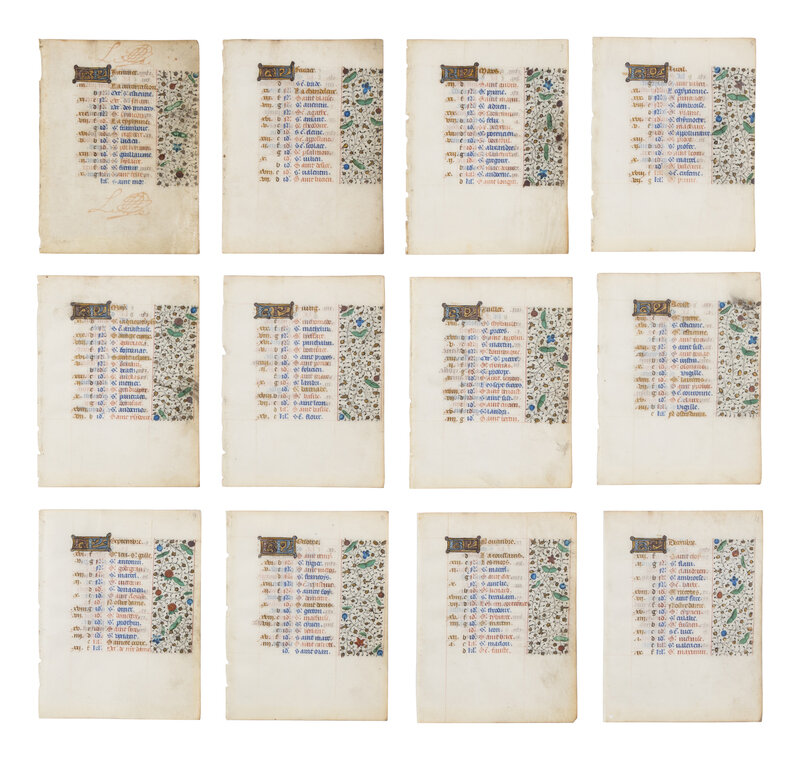 Twelve leaves from a Book of Hours, Calendar, in French, illuminated manuscript on parchment [France, Paris, c. 1450–1470]