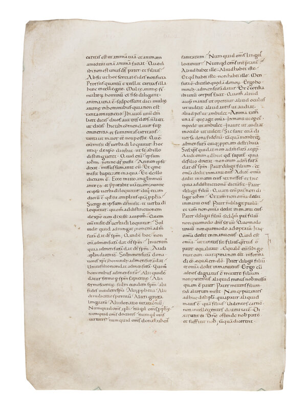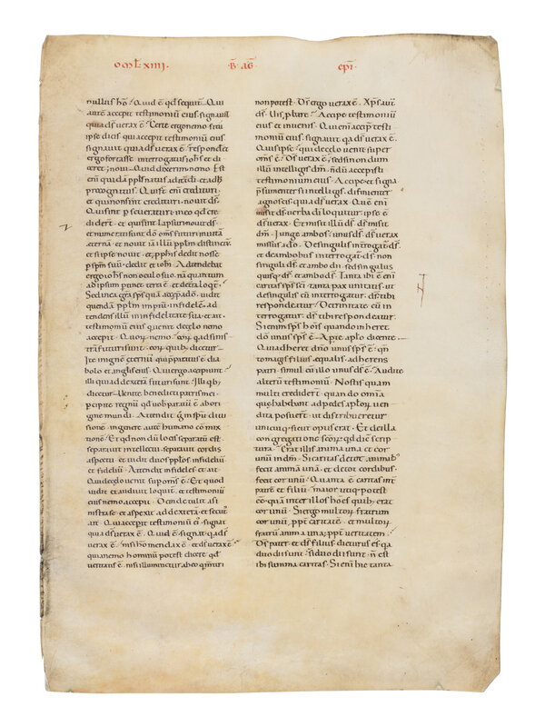 Florentine School, single leaf from a copy of Augustine’s Tractatus in euangelium Iohanem (Homily XIIII), in Latin, manuscript on parchment [Italy, Tuscany c. 1130–1150]