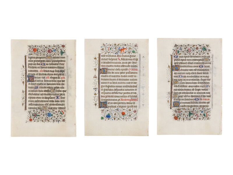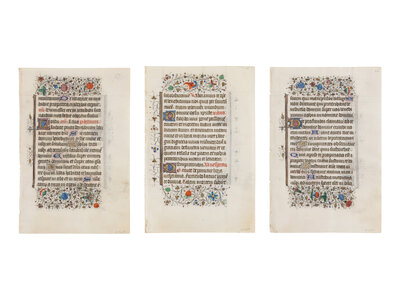 Three leaves from a Book of Hours, Use of Rome, in Latin, illuminated manuscript on parchment [Southern Netherlands, Bruges, c. 1460]