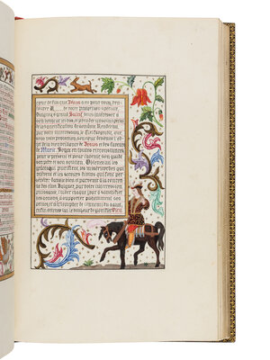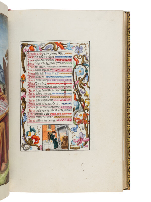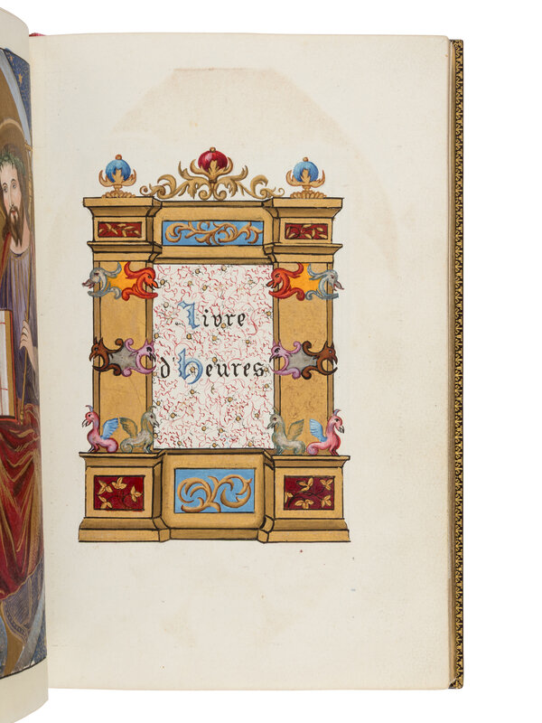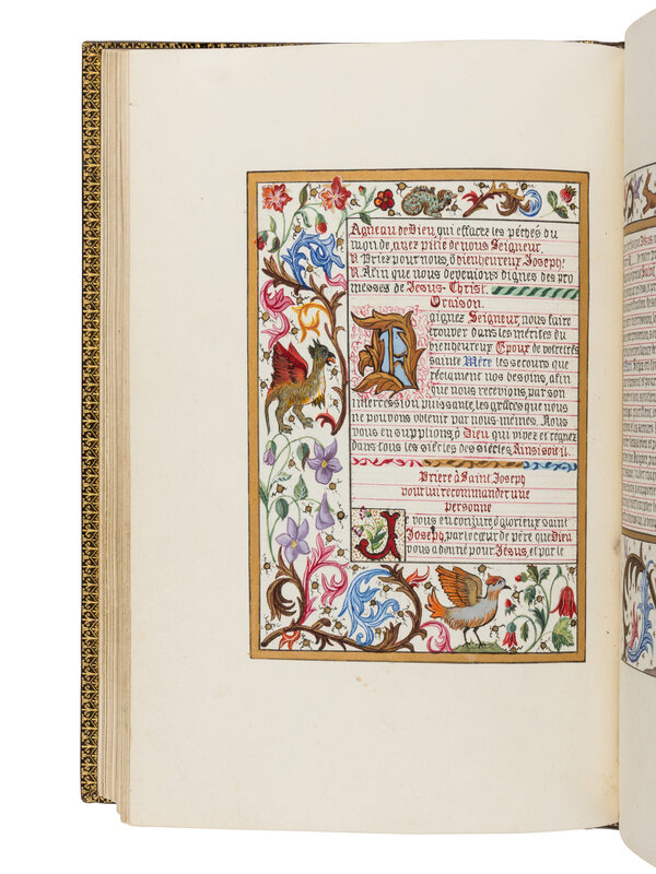 Livre d’Heures [Marriage book offered on the occasion of the wedding of Paul Champion with Julie Rayel, 14 February 1882: “14 février Julie Rayel unie à Paul Champion 1882”] in French, illuminated manuscript on paper, with illuminated and historiated bracket borders and seven full-page miniatures, France, Paris, c. 1882 (or little before).