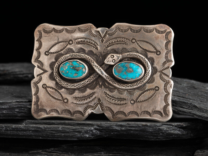 Navajo Silver and Turquoise Snake Belt Buckle