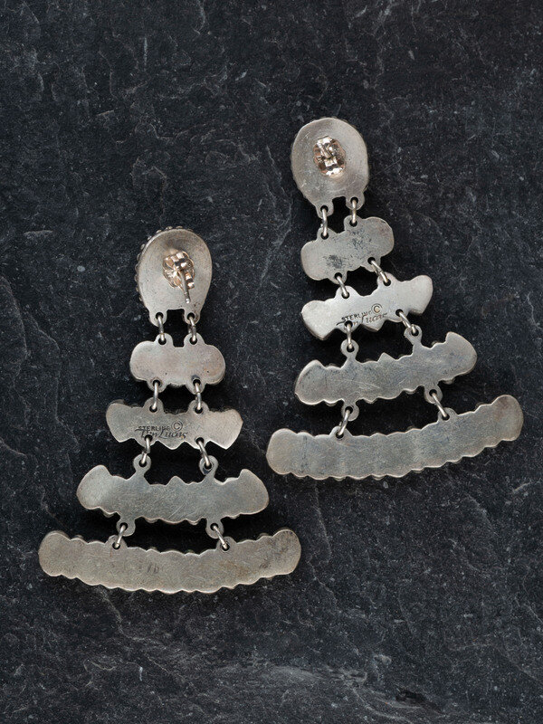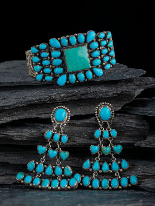 Southwestern-style Sterling Silver and Turquoise Cluster Cuff Bracelet and Earrings