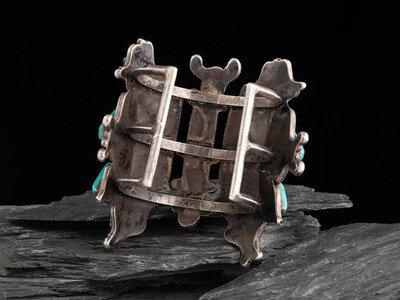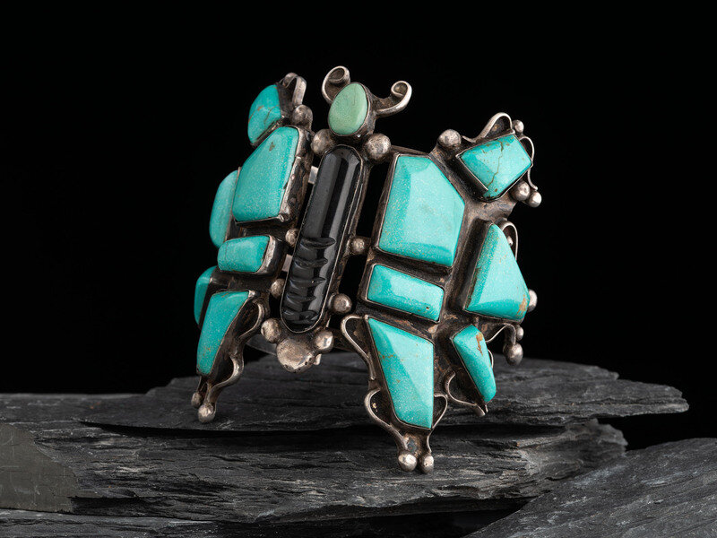 Large Navajo Silver, Turquoise, and Jet Butterfly Statement Cuff Bracelet