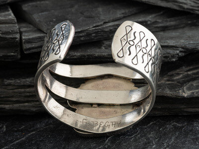 cuff width 1-7/8 inches, interior circumference 5-5/8 inches + gap length 3/4 inch, weight 77.9 dwt.
