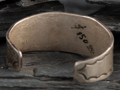 cuff width 1 inch, interior circumference 4-3/4 inches + gap length 1-1/8 inches, weight 36.5 dwt.