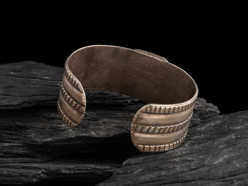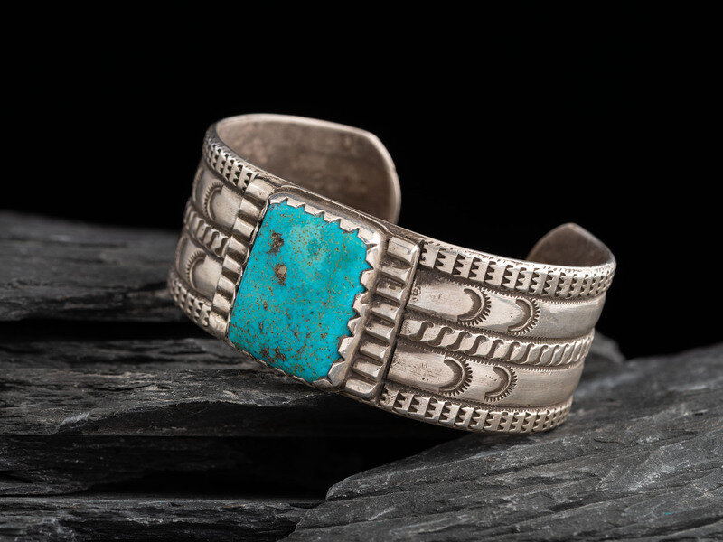 Navajo Stamped Ingot and Turquoise Cuff Bracelet