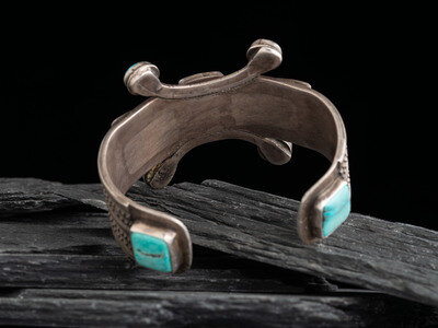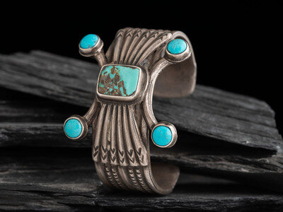 Navajo Ingot and Turquoise Cuff Bracelet