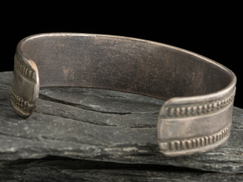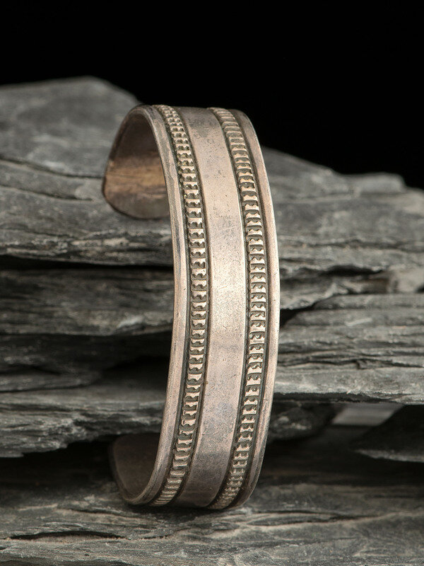 cuff width 3/4 inch, interior circumference 5-3/4 inches + gap length 1-1/2 inches, weight 31.0 dwt.