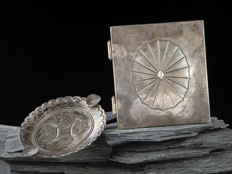 Navajo Silver Lidded Box and Ashtray