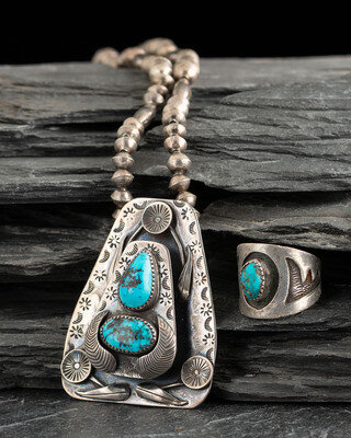Navajo Silver and Turquosie Necklace and Ring