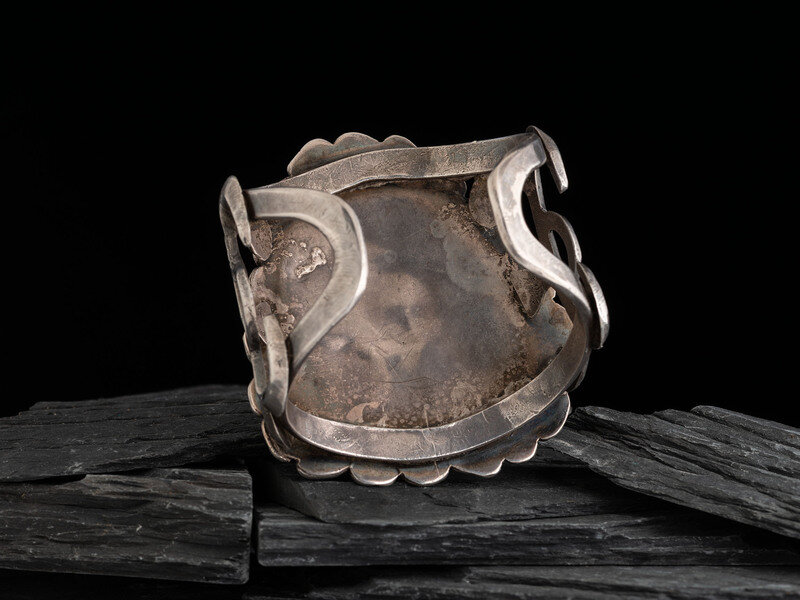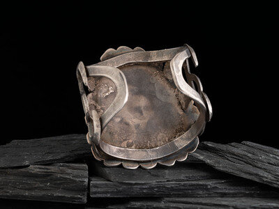 Large Sandcast Silver and Turquoise Cuff Bracelet