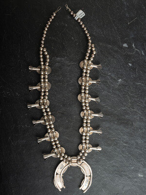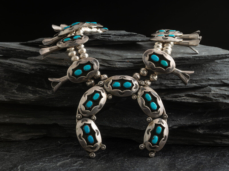 Navajo Silver and Turquoise Squash Blossom Necklace