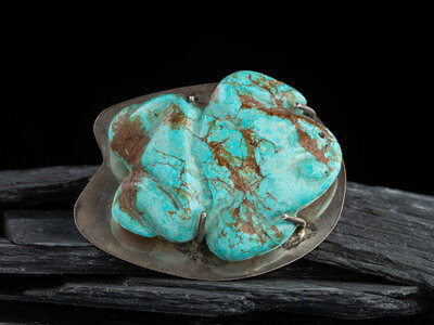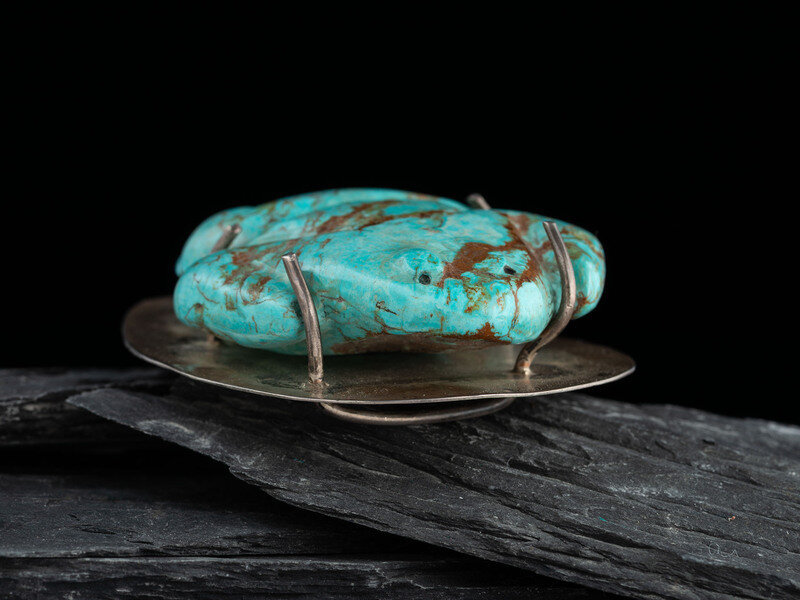 Sterling Silver Bolo Slide with Large Carved Turquoise Frog