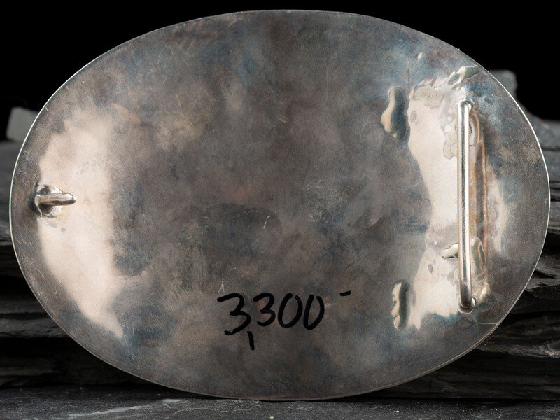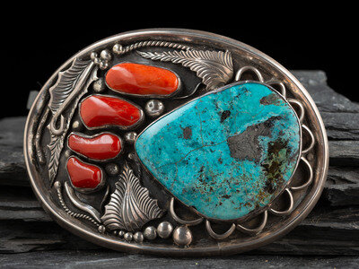 Large Navajo Silver, Coral, and Turquoise Belt Buckle