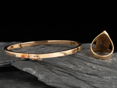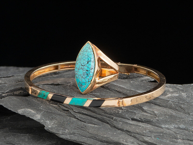 Southwestern-style 14K Gold Ring and Bangle Bracelet