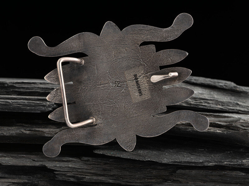 Navajo Sandcast Silver and Turquoise Belt Buckle