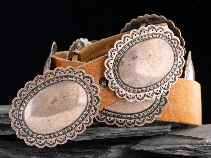 concha/buckle height 2-1/4 inches x length 3 inches; belt length 39-1/2 inches; total combined weight 287.1 dwt.